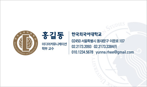 따라서 본 항에 예시한 규정대로 규격 및 색상, 위치 등을 준수하여 제작하여야 하며,양면을 사용하여 국, 영문 명함을 제작한다.